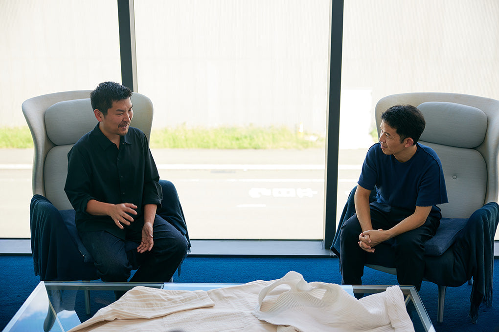 Spiber’s “Brewed Protein™” is without a doubt a material that will benefit people, societies and the Earth a century from now. Using sugars found in plants as raw materials, it combines a microbial fermentation process, genetic engineering, biotechnology, materials engineering and other advanced technologies to produce structured proteins. The fibers made from this material are spun into yarn, woven into fabric, and are now steadily being implemented into society. The material is biodegradable and significantly reduces land and water usage compared to conventional counterparts derived from petroleum or animals. It offers a sustainable material for apparel with a significantly reduced environmental load. However, the vision of President Kazuhide Sekiyama extends far beyond this. It encompasses the future of food, agriculture, water, and the way humans will live. His dialogue with designer Yoshiyuki Miyamae will continue for a long time.