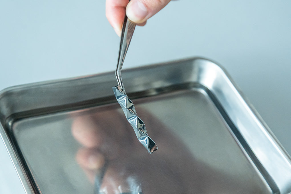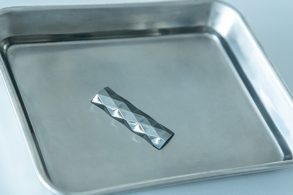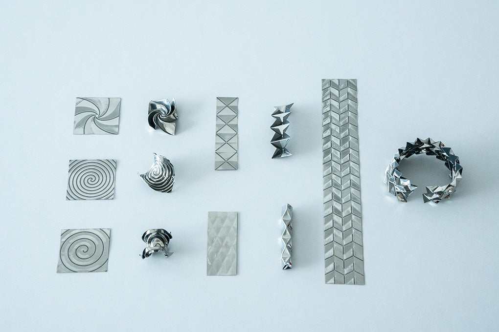 Miyamae: I felt that we needed a clear narrative about what kind of product it should ultimately become. Once Fujifilm joined the project and we decided to use metallic materials, the image of jewelry organically emerged. In the world of jewelry, forms are generally created by carving materials such as gemstones, so the idea that something could be born from a single sheet felt like a very intriguing experiment, even when placed alongside the historical context of jewelry. It also represented an approach different from European jewelry traditions, and we expected that it would leave a strong impression when presented overseas.