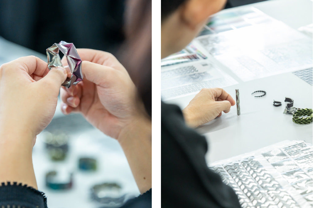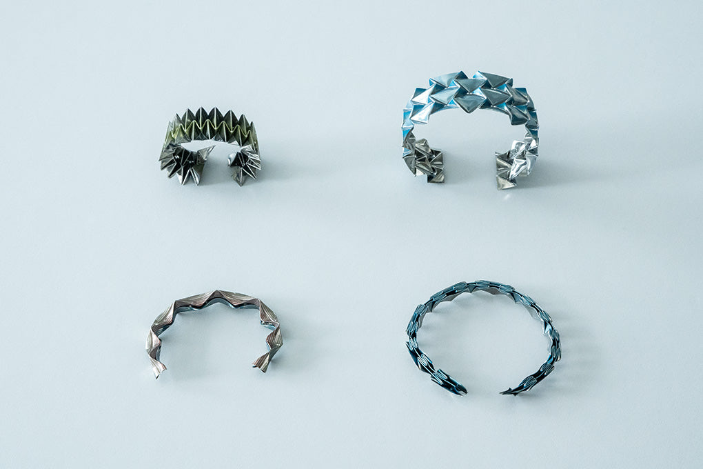 Miyamae: Yes. We want to continue exploring the act and technology of “folding”, as well as the new forms of expression that emerge from it. The bangles we presented in Paris might also become viable products in the future, depending on changes to the sheet material.