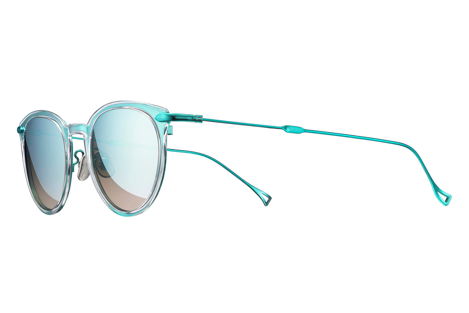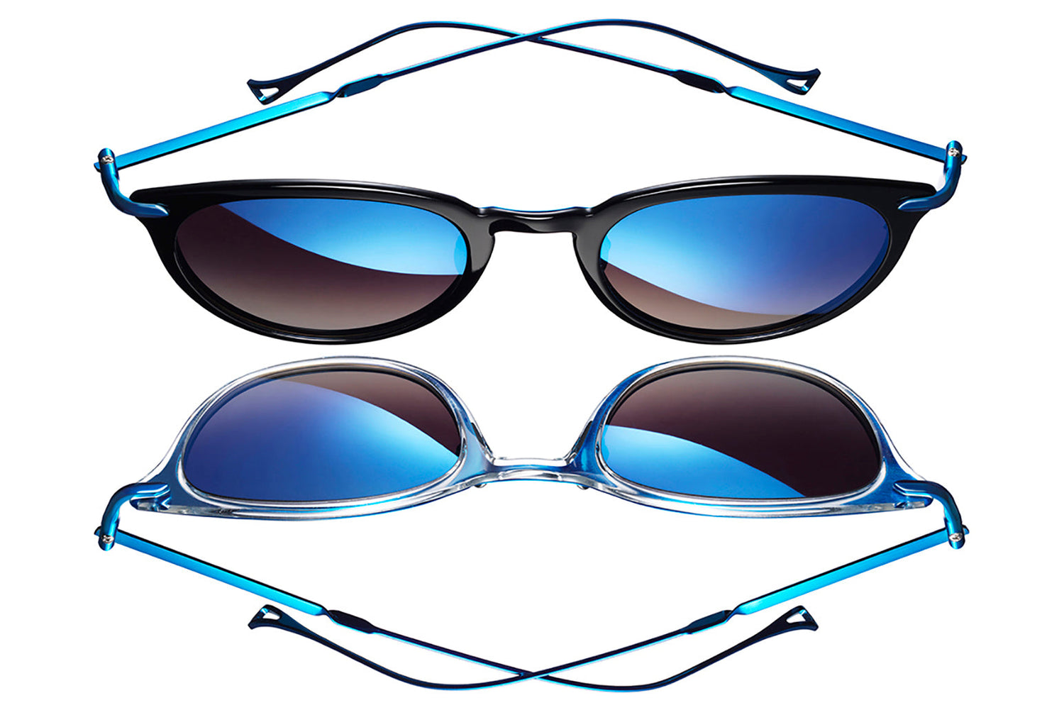 Some colored lenses for sunglasses use Revo mirror lenses with multi-layer coating. You can enjoy the unique combination with the color of the frame. The color selection of lenses born from new technology is an important design element for ISSEY MIYAKE, who is particular about color.