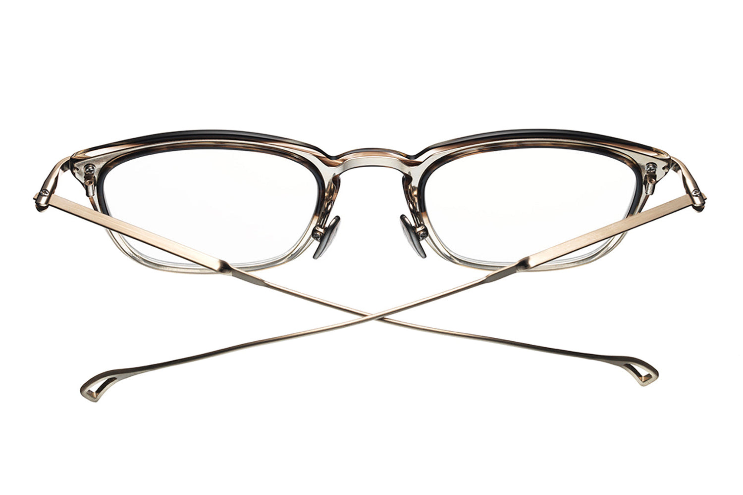Acetate material cut to 3.7mm thick and 2.3mm thin is supported from the back by 0.6mm thick β titanium. The texture of the different materials creates a contrast, and not only the beautiful colors, but also the expression with depth and floating feeling. Despite its slim design, the lightweight and highly durable β-titanium material provides excellent strength and comfort. The beauty of the joints of different materials speaks to the sophistication required for combination frames.