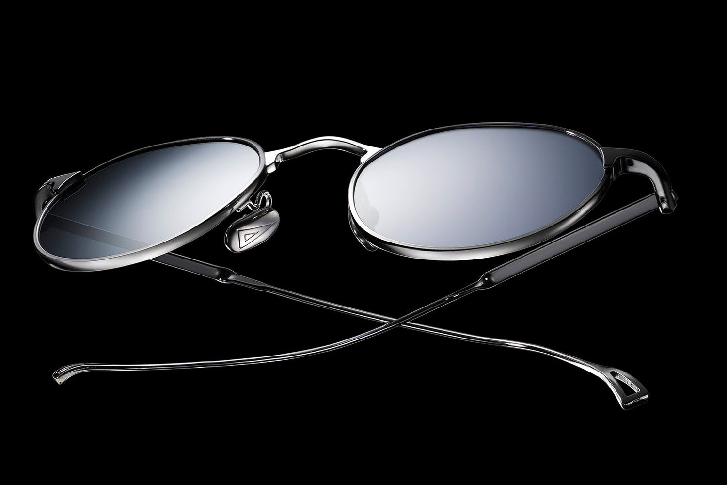 The simple form of the metal frame is emphasized by adopting a 2-curve lens instead of a 0-curve flat lens, which causes reflections on the back side. It is a detail that creates a modern silhouette while considering ease of use.