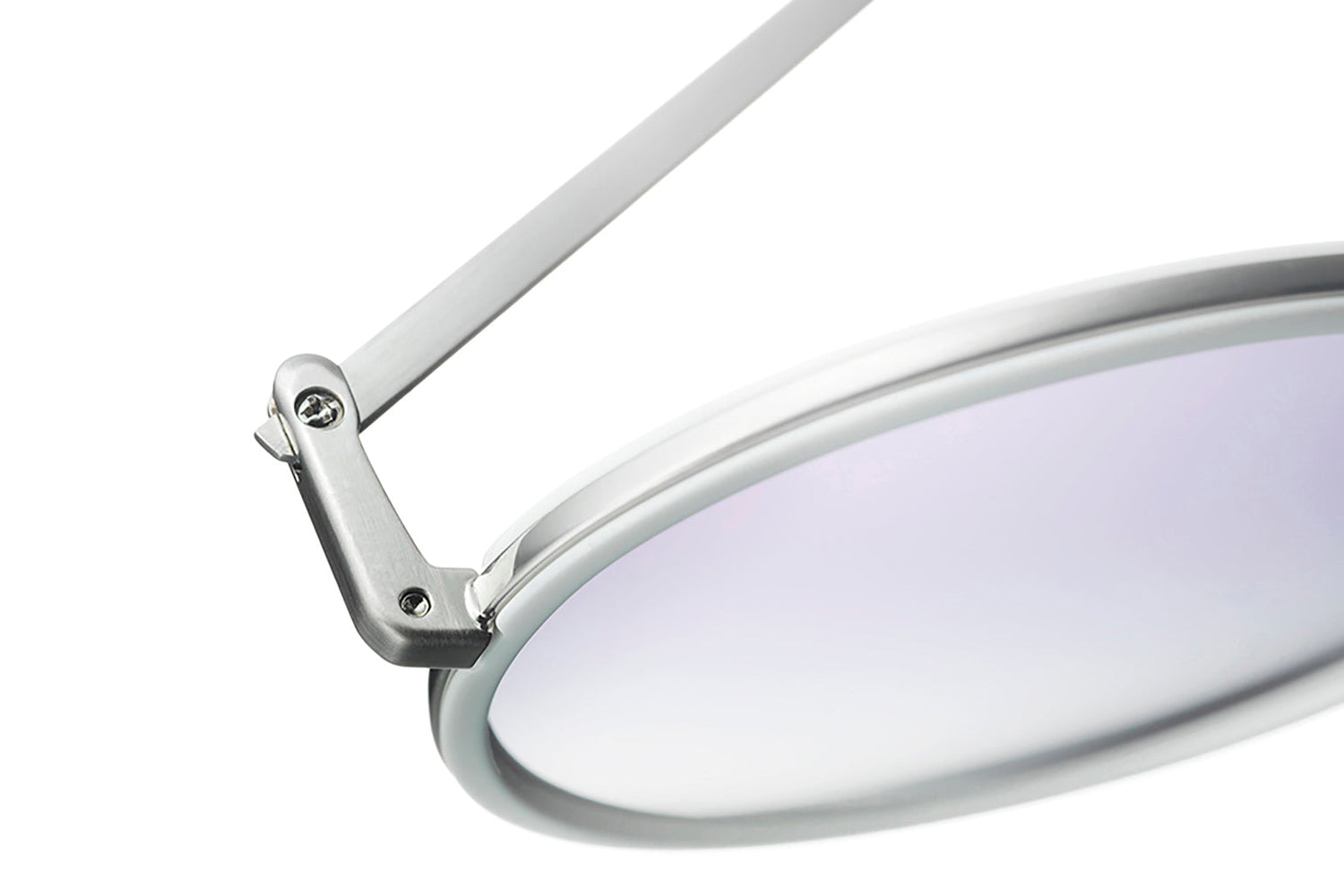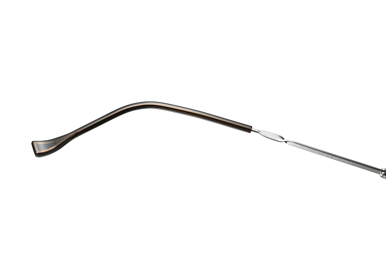The "armor" on both sides of the front is an important part that connects the metal Outerwear rim and the temple. Normally, several parts are brazed together, but this time, the functions of lens lock and hinge are completed in one part. Although it is one of the most time-consuming manufacturing methods, the simple integrally molded structure is excellent in strength and design.