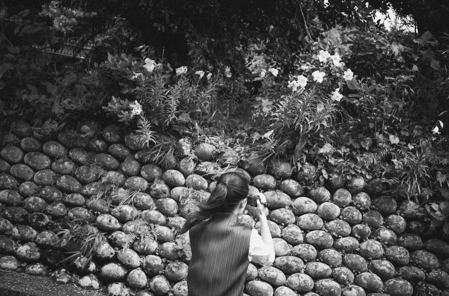 Tamaishigaki, the stone walls of Hachijōjima, were built by Edo Period exiles, who earned their daily rations by carrying stones, rounded by the sea, up from the coastline and stacking them according to traditional techniques. This combination of beauty and functionality has become one of the island’s most iconic scenic destinations.