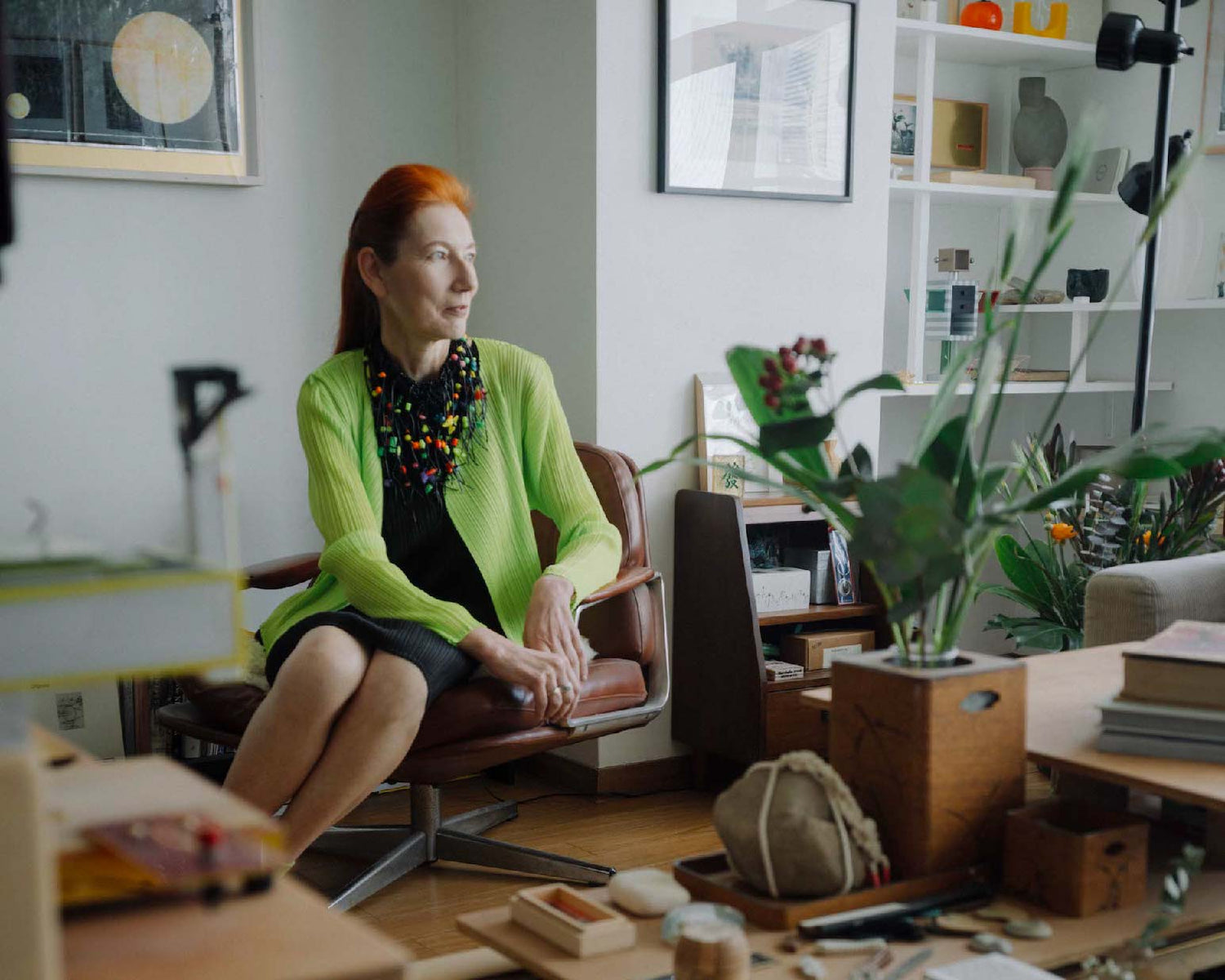 “I like to combine different colors and shapes, always inventing new ways to associate one to another. Obviously, I wear them to work, but also to attend openings, dinners, and parties. As well when traveling. PLEATS PLEASE are indeed the best outfits for any moment and any circumstances, you just have to select some accessories to adapt them to any occasion. They are the most versatile clothes I have ever found. I love that. And they are so light; for me, they are synonymous with freedom. There’s no other clothing quite like it.”
