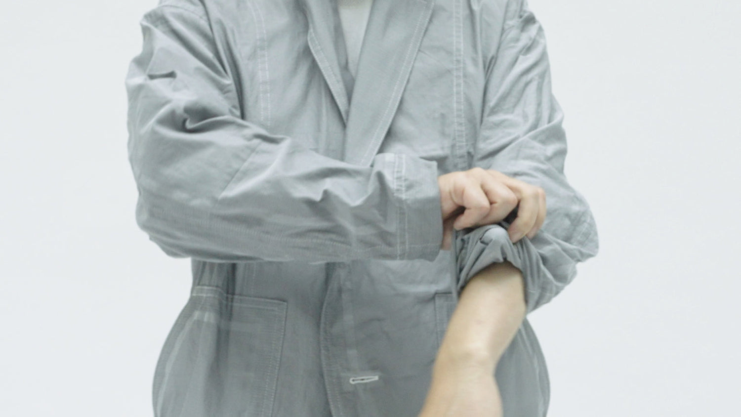 Shape-memory means, for example, when you roll up the sleeves, the fabric will keep that shape. The folds won’t gradually unroll and sag down. “To roll up one’s sleeves” is an expression that conveys the determination or frame of mind to buckle down and get working. “TYPE-U” embodies that feeling. You might even say that it possesses the function of providing emotional support to the wearer. Of course, once the sleeves are unrolled and gently brushed down by hand, they go back to their original form without any wrinkles.