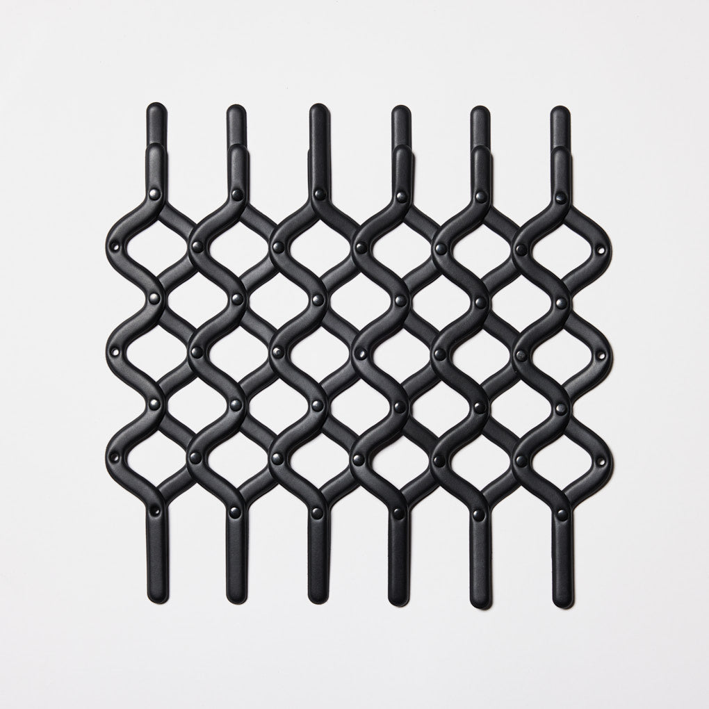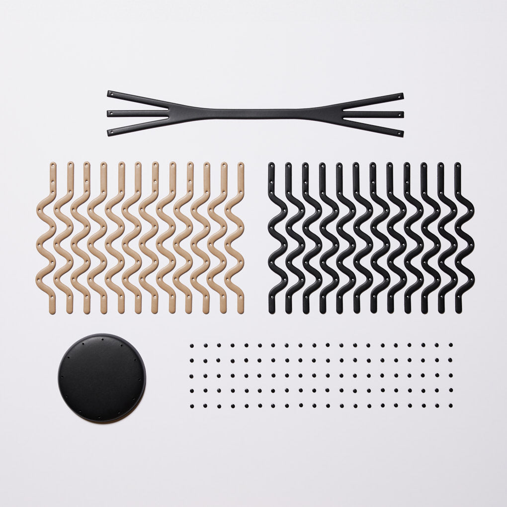 This series of bags looks like soft baskets, focusing on the flexible structure of nets. The beautiful three-dimensional curved surface is created using a collection of smooth, corner-less shapes. The design fuses industrial and craft techniques, with parts made using industrial methods joined together individually by hand by artisans.
