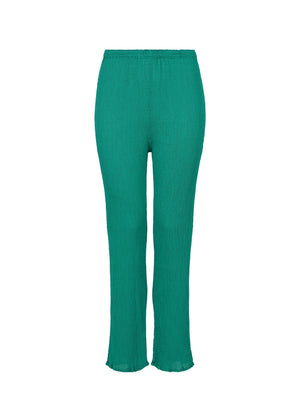 These SEE-THROUGH CREPE straight pants are made from garment-dyed fabric that is woven using high-twist thread for the weft. The weft thread is twisted back during the dyeing process, which gives the fabric the unique look of crepe with vertical creases.