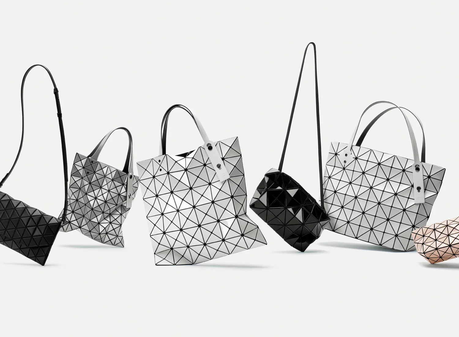 Launched with its first collection of the autumn winter 2010 season as an independent brand, BAO BAO ISSEY MIYAKE creates bags of innovative designs out of compositions of a variety of triangles. Not only are the bags—transforming from planes into geometric forms as they fill with items—designed for various occasions in life, but also they are products of utility that can be carried and stored flat. As the brand continues to explore the possibilities within the shapes and arrangement of geometric pieces, it engages in research and development of new materials along with new styles of bags, thereby challenging itself to look at what a bag is, while bringing a sense of beauty, wonder, and joy to the users.