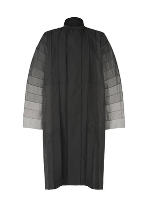 This coat was created as part of the “TYPE-XIV Eugene Studio project,” a collaboration between contemporary artist Eugene Kanagawa (Eugene Studio) and A-POC ABLE ISSEY MIYAKE. Building upon the concept and process of Kanagawa’s representative series “Light and Shadow Inside Me,” the project returns to the fundamental relationship between warp and weft—the basic structure of woven fabric—to explore a new gradation using only black and white threads.