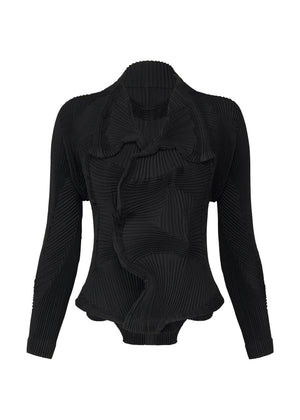 This Steam Stretch* jacket features vertical and horizontal pleat shapes arranged like patchwork. This distinctive textile creates an unparalleled design for an item that can be active in a wide range of scenes. This is an item from the “TYPE-I” project by A-POC ABLE ISSEY MIYAKE, which pursues the possibilities for clothing offered by this new color created through the use of Triporous™, a new material made from rice husks.
