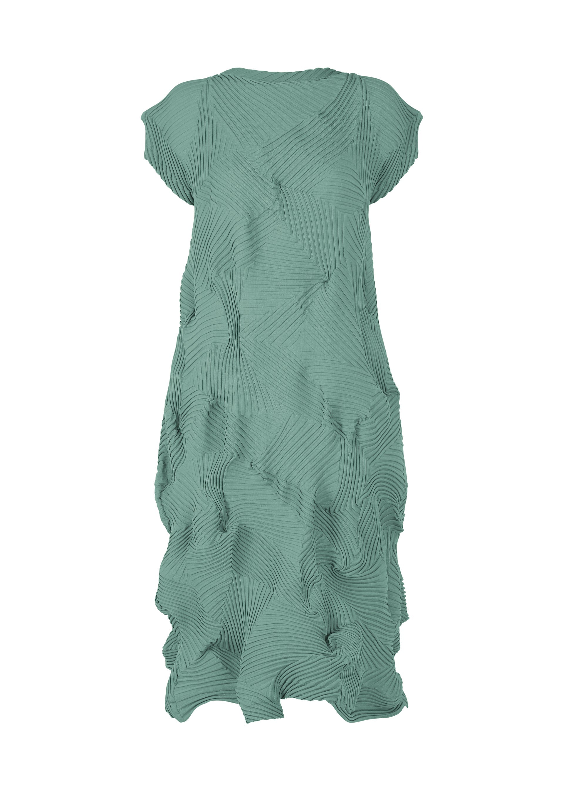 This dress is characterized by its freely-arranged pleat lines created using the Baked Stretch* technique. It has a softer texture compared to the patterned items in the same series.