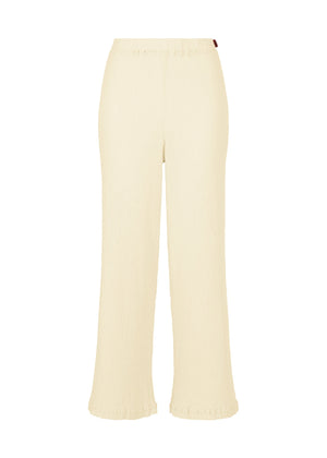 These KYO CHIJIMI pants are characterized by their light and supple texture. They are woven on a loom unique to the production area using ultra-fine cotton yarn that has been twisted more than regular hard-twist yarn.