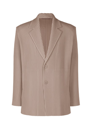 This tailored jacket is made from kersey (twill)-like material with three-dimensional ribbing that looks diagonal. It is characterized by the light comfort unique to polyester despite its wool-like fluffiness. The design features a relaxed silhouette that even pairs well with thick inner garments. It has pockets on both sides, inner pockets, and a center vent in the back.