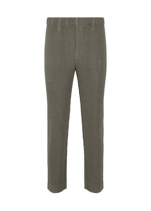 These straight pants are characterized by their thin, soft, wool-like texture despite being made from polyester. The rich hues enhance the material's look and give a warm impression. There are pockets on both sides and belt loops at the waist. They have a button-fly design.