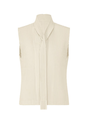 This vest is available in refined color tones. It is characterized by its portability and light comfort with the unique quick-drying property of polyester material. It pairs well with jackets due to its necktie-like design that extends from the collar. It has pockets on both sides.