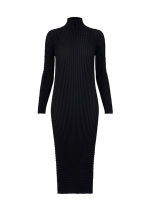 This high-neck, long-sleeved knit dress offers abundant looks as it expands and shrinks like a sponge. The bouncy material, which is knit with hard-twist thread, appears compact at first, but transforms to have a silhouette that moderately hugs the body when worn. This item that is perfect for daily life is made with soft-textured cotton and polyester material that is easy to care for.