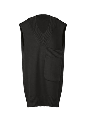 This knit vest gives a moderate feel of dissonance with its texture and size. Although made from knit material, it recreates a unique surface that looks like it was painted. It is characterized by detailing designed with oversized ribbing and pockets.