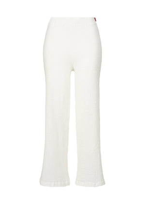 These KYO CHIJIMI wide, long pants are characterized by their light and supple texture. They are woven on a loom unique to the production area using ultra-fine cotton yarn that has been twisted more than regular hard-twist yarn.