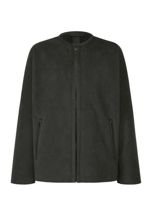 This jacket is made from a faux sheepskin textile jointly developed using Toray Industries’ Ultrasuede® partially plant-derived faux suede combined with blended fiber fleece that includes recycled wool. It is characterized by its fluffy feel reminiscent of natural sheepskin through the depth of coloration and soft texture created by printing the exterior with sumi ink pigment and then stone-washing it.