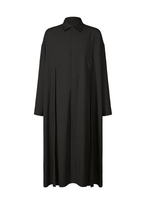 This tunic-length, long-sleeved shirt features box pleats on the front and back that add lightness and playfulness to its sleek silhouette. The material is cotton-like, comfortable against the skin, and easy-care.