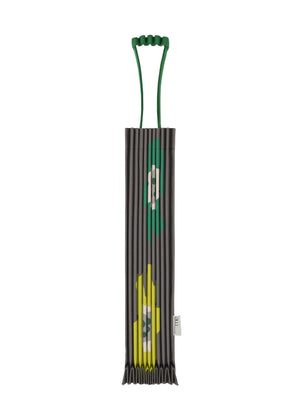 This tote bag is characterized by its straight lines and unique handle inspired by tree trunks. The pattern depicts the process from seeds sprouting to flowers blooming.
