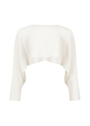 This STRETCH PLEATS stretchy crop top features vertical and horizontal pleats. It offers relaxed comfort with dolman sleeves. After pleating, the fabric is turned inside out to create a three-dimensional silhouette.