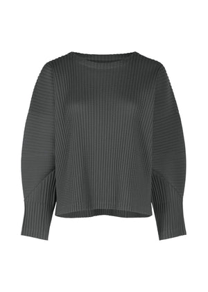 This warm, long-sleeved top is made of thick brushed mesh material with pleated detailing. Despite the mesh fabric that offers light comfort, it has a warm feel and no transparency. There are pockets on both sides.