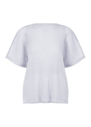 This round-neck, half-sleeve top is made from mesh fabric with evenly spaced pleats.