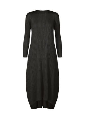 This round-neck, long-sleeved dress is available in colors that evoke people dancing elegantly on a dance floor with a loose, relaxed style. It is characterized by its rounded hem.
