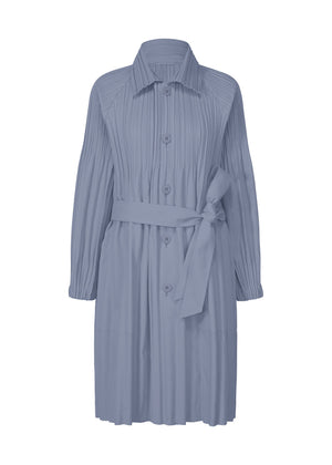 This long coat is made from thick, wind-resistant fabric that is ideal for chilly seasons. It has buttons, a waist cord, and pockets on both sides. It is characterized by its sleeves with Keshi pleats.