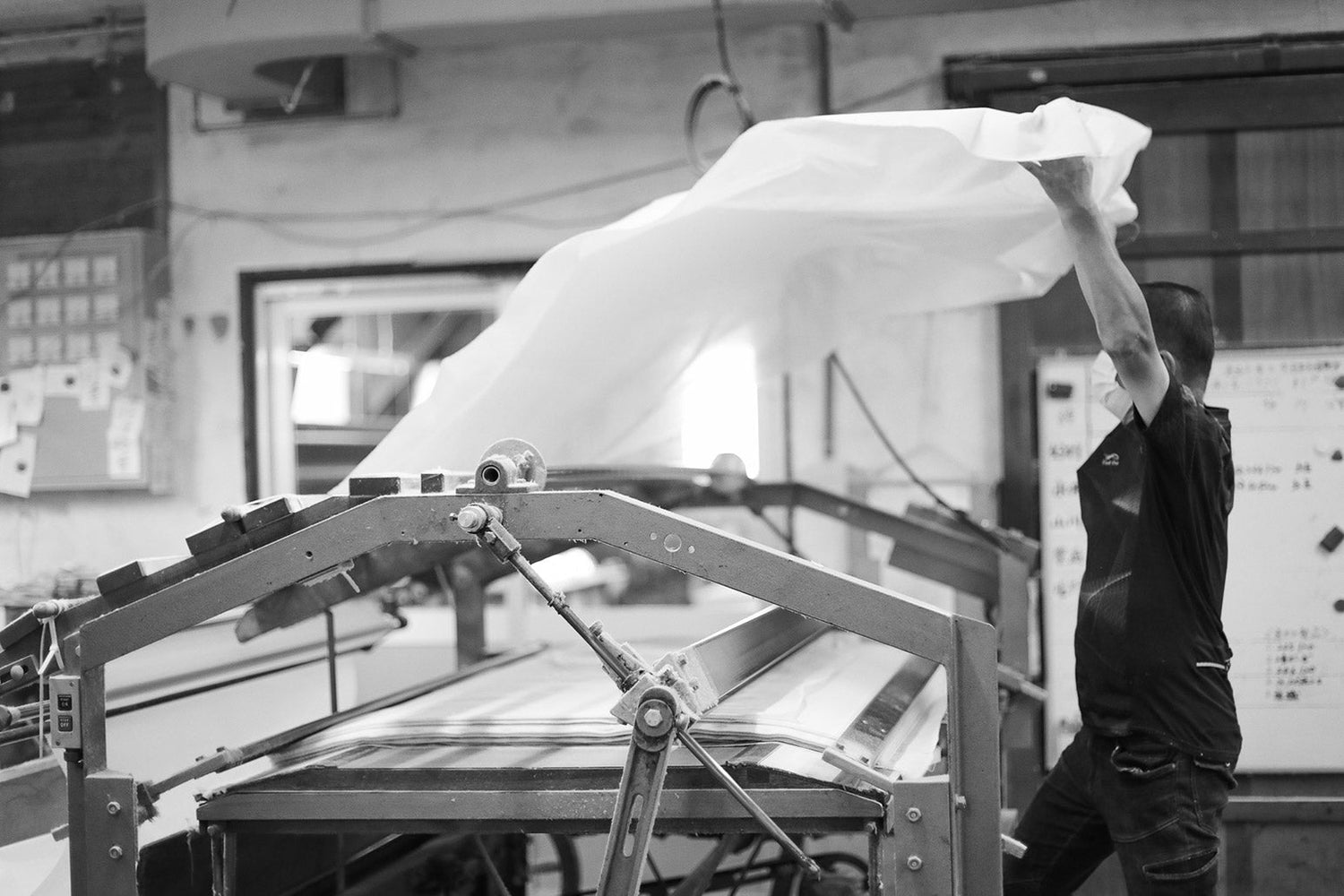 Lake Biwa is fed by flows of spring water, purified through deep layers of ancient mountains. For centuries, this water has fuelled a rich daily landscape in Takashima – from the cultivation of a local hemp known as Omi jofu to fishing traditions and seasonal festivals. The spring water has long been used by local chijimi fabric weavers. The water’s purity has countless benefits – from prevention of thread breakages to the natural control of temperature and humidity when worn. Pure water is elemental to the beauty of HaaT’s KYO CHIJIMI. Artisans skilfully weave the cotton textile with countless twists and gaps in the weft thread, fuelling a lightness to the touch with minimal skin contact. Spring water is carefully passed through the fabric, causing it to shrink by half. This creates a unique puckering and organic pleating effect with an unevenness more typically found in nature than manufactured items.