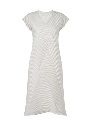 This Steam Stretch* dress is characterized by its pleated lines that intersect in a flowing manner over the body. The combination of the differently sized pleat peaks and the texture of the cotton threads woven into the fabric give a dynamic impression. The dress is reversable. It is made from partially plant-derived polyester and recycled polyester thread.