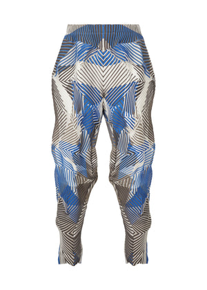 These pants are characterized by their rich colors created using the Baked Stretch* technique. By printing different patterns on the left and right sides of the convex part and the concave part of the pleats, the vivid colors of the print overflow from the shadows of the unevenness when worn, creating a beautiful visual effect.