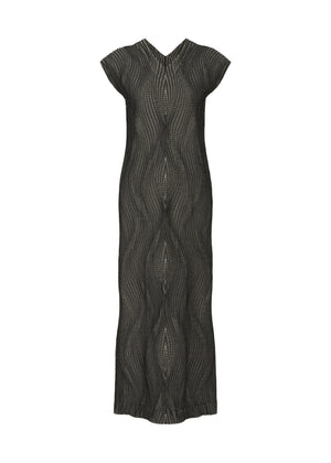 This dress is from the TYPE-XI Spiber project, a collaboration A-POC ABLE ISSEY MIYAKE and Spiber Inc., a company that tackles resource challenges through protein-based innovation. It uses Brewed Protein™ fiber, a new biodegradable material made using Spiber’s proprietary microbial fermentation technology. The weft threads are left undyed to preserve the natural color of the Brewed Protein™ fiber, and pleats are formed by leveraging the shrinkage differences between the fibers and polyester.