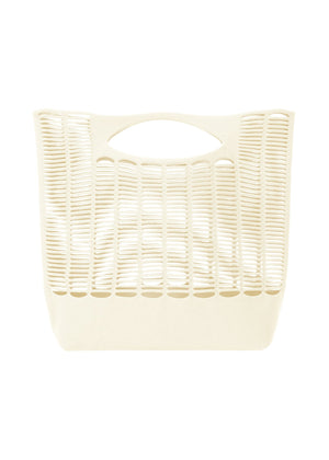 This light, soft knit tote bag is made from a single thread. Because it is washable with water and is easy to care for, it can be freely used in all parts of everyday life such as shopping. It is a bag that will adapt to your daily life, as you can fill it with items and place it in your room like a basket. The bag's corners are woven inside to create a bottom gusset, and it is available in basic colors that can be enjoyed regardless of the season.