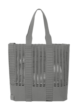 MOKKO series tote bag that is easy to use even in business situations. The fabric, which uses heat-fused thread, does not easily lose its shape and can securely store documents, PCs, and other items. There is also an inner pocket woven together with the main body. It also features a streamlined design that takes advantage of MOKKO's unique weave, with the handle and shoulder tape passed through slits. The knitted tape is woven using the same thread as the main body, and fits perfectly to the body, and the length can be adjusted in three stages.