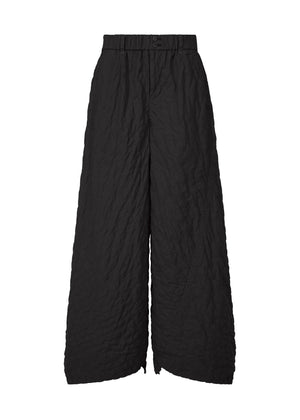 These pants are characterized by their airy, cloud-like feel. They were conceived based on a single piece of cloth, and the contrasting areas serve as a key design feature.