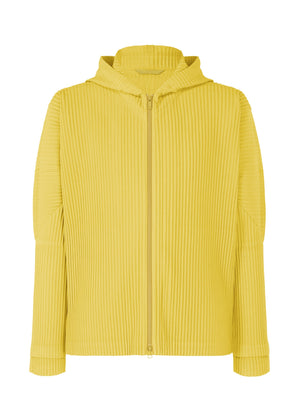 This zippered parka is available in chic color tones. It is characterized by its double-layered sleeves, designed so you can insert your thumbs through them like thumbholes. When worn under a coat or jacket with the sleeves showing, it creates a layered style that highlights the pleated fabric's essence. It has pockets on both sides.