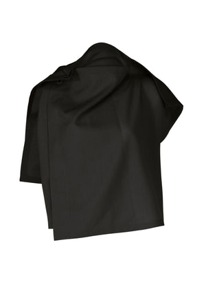 This top is characterized by its fabric's sheerness and cooling feel. It has a three-dimensional silhouette when worn, but turns into a flat square shape when folded.