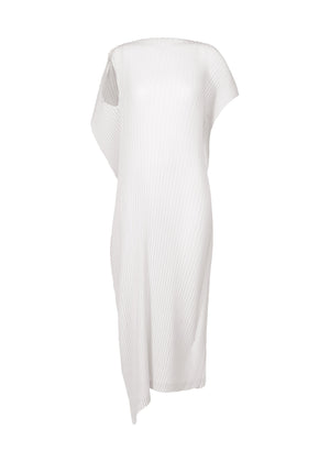 This pleated dress is designed to give the sense of a single quadrilateral piece of cloth. It is made from polyester crêpe de Chine, which has a soft texture and beautiful flowy feel. Enjoy the excellent versatility unique to solid colors and the refreshing coloring.