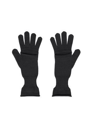 These gloves are knitted while drawing inspiration from rubber gloves. By twisting and knitting thermoplastic threads, a firm texture is created despite the knit material. The gloves are characterized by their fingertips, which are designed to be slightly larger than usual to evoke the feel of rubber gloves. Ideal for colder seasons, this item can be worn with tops or outerwear.