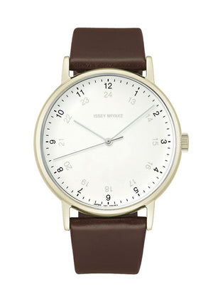 The "AM face" and "PM face," which are the two faces representing a day, are expressed on the watches' dials. The "AM face" has a crisp, white finish and clearly outlines the numbers 1 to 12, while the "PM face" is finished in a bold black, with the primary numbers of 13 to 24 giving it a more active nuance. The concentric circle pattern on the dial makes the numbers stand out when viewed at an angle and adds depth to the expression of each face. This model is in a new color that softly reflects light.