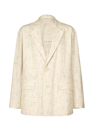 This jacket is made by dying three types of cotton thread using a Kasuri dyeing technique and then weaving them into a random pattern inspired by the look of light shining in. It pursues a soft feel and the texture unique to natural fibers.