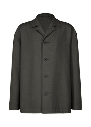 A jacket made of fabric woven by twisting two types of yarn. By dyeing the threads differently, we pursued a wool-like texture, warmth, and texture.
