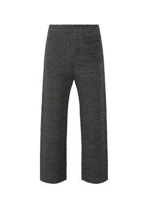 These seamless pants are made by knitting a combination of polyester and Japanese washi paper to achieve a refreshing, comfortable fit. They are characterized by the natural texture of the paper and rich mélange-like fabric.