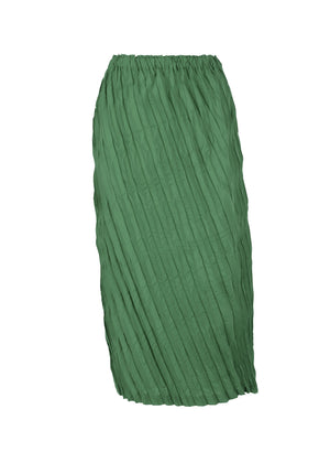This skirt undergoes twist processing along the bias to create its striking form reminiscent of the peaks of whipped cream. The simple design highlights the three-dimensional texture unique to twist processing. The skirt has one hip pocket and a slit on the left side.