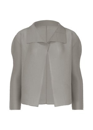 This STRETCH PLEATS long-sleeved stretchy cardigan features vertical and horizontal pleats.