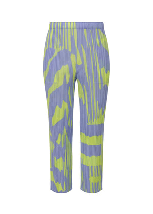 These thin pants feature printed lines reminiscent of light refraction on the surface of water. They have pockets on both sides.