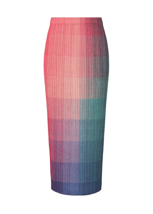 This skirt features an original color chart print with beautifully overlapping colors. The pattern incorporates a stencil printing texture as-is to express the look of photons. There are pockets on both sides.